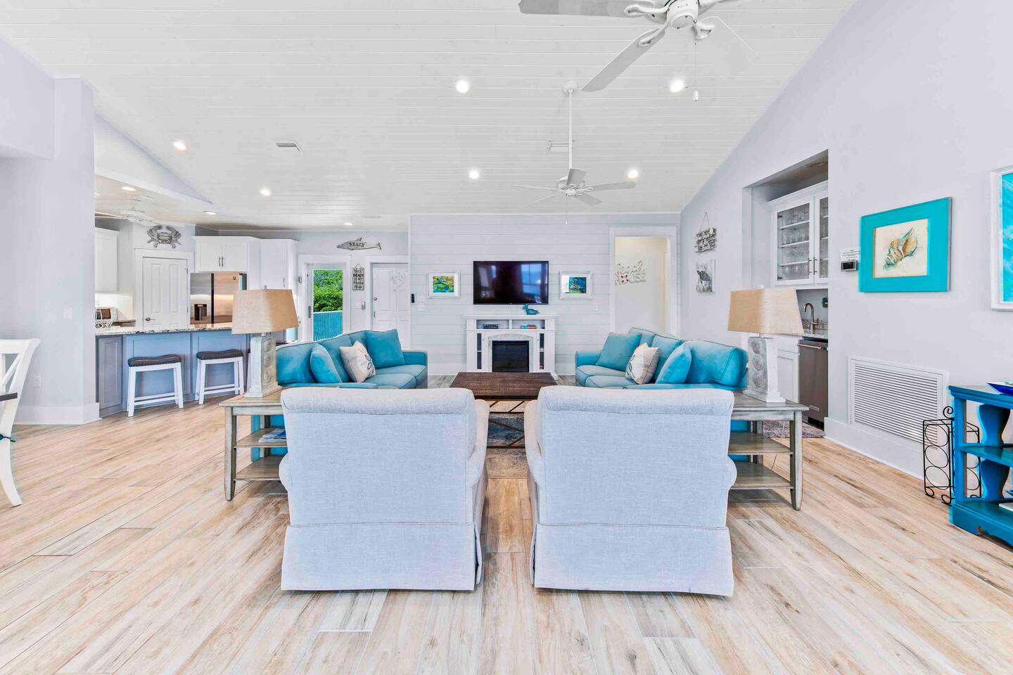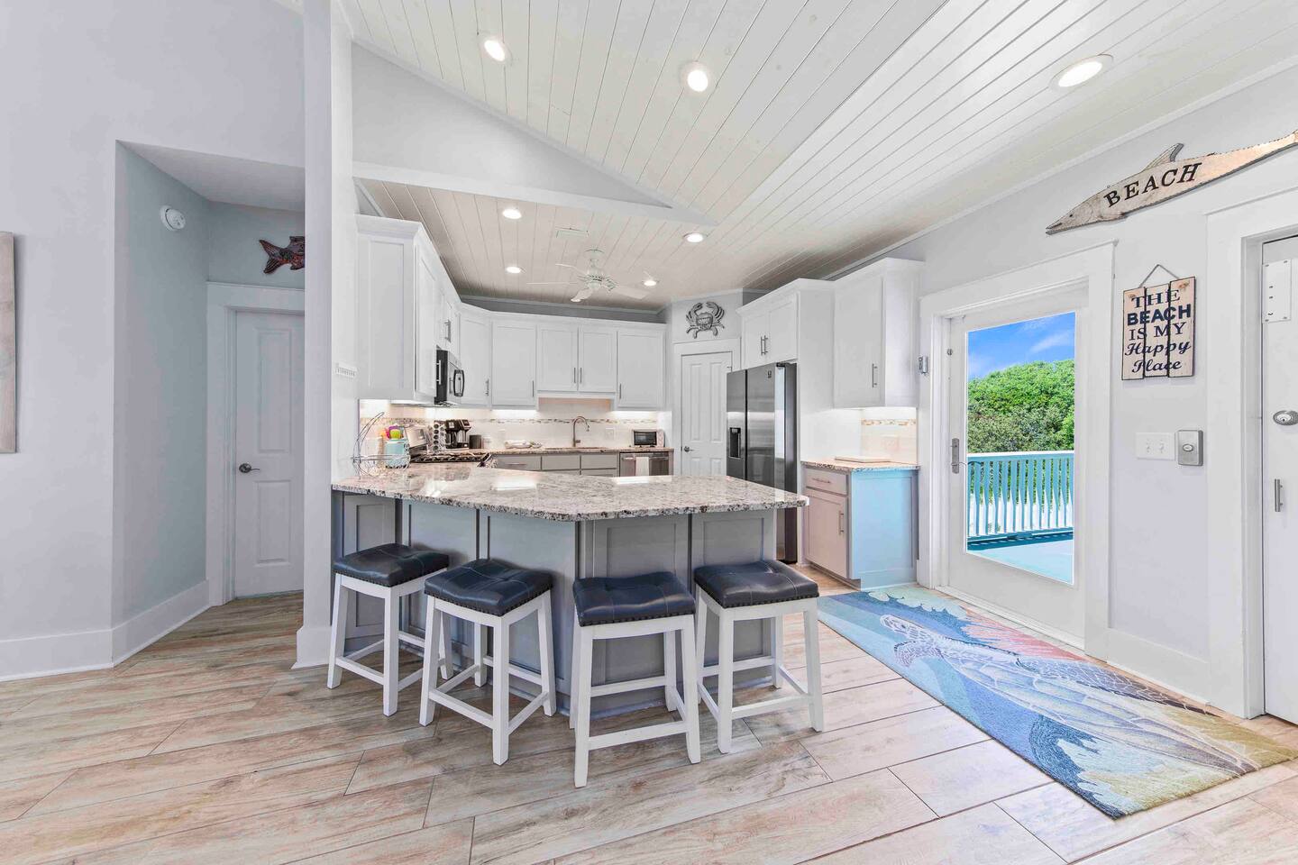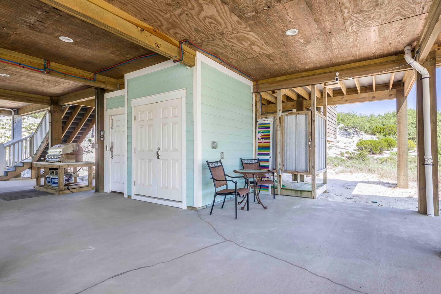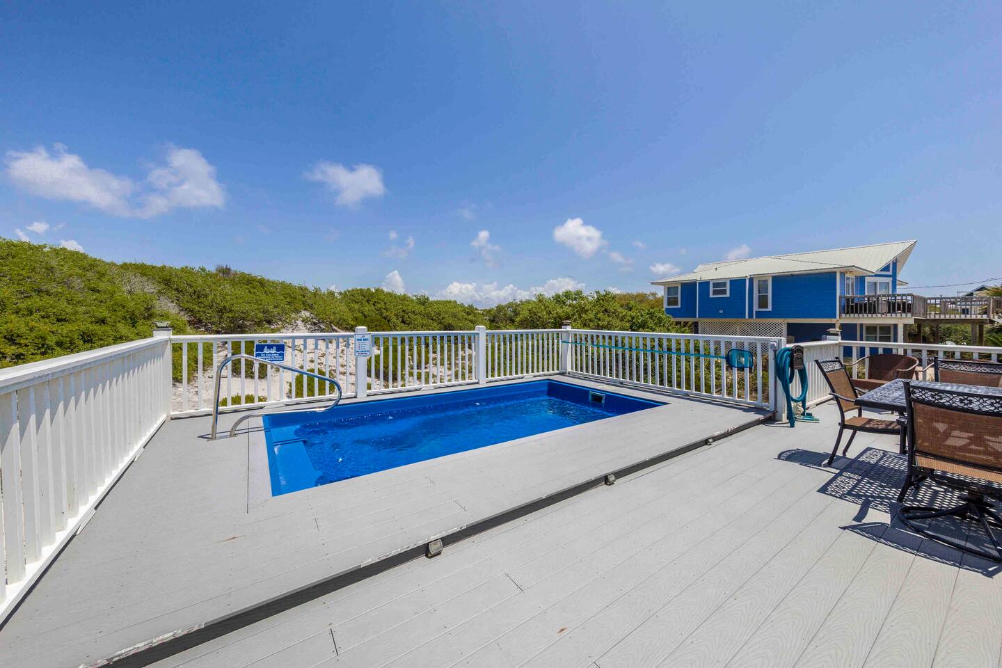 * 1 minute walk to the BEACH access! * Villa sleeps 17 people * Next to Kiva Dunes Golf Course * 2 level home with separate entrances Upstairs includes: ~ 2 master bedrooms with a king bed, en suite bathroom, and TV ~ Bunk room one has 4 singles and TV ~ Bunk room two has 2 fulls and 1 single and TV ~ 3rd Full bathroom with tub ~ Spacious open concept living area with TV room, dining room and kitchen (fully stocked for the cook!) ~ Patio with rocking chairs to relax and listen to the waves ~ Private salt water pool. ~ Pool deck with dining and lounge seating Downstairs (new addition) includes: ~ Large combo room; including a bedroom with a queen size bed and an extra TV lounge area ~ 2nd bedroom with a queen size bed ***These two rooms are separated by a barn door and you have to walk through large room to get to second bedroom ~ Full bath with stand up shower • Fully stocked updated kitchen • Grill and utensils • Coffee set up with Keurig Duo- we supply first day of cups, filters and sugar • We provide a starter pack with dish soap, hand soap, shampoo, lotion, garbage bags, paper towels, toliet paper. For longer stays you may need to restock on your own. • Netflix, Hulu and Disney Plus in all rooms • Onsite washer and dryer • Private onsite parking • Beach towels and blankets • Beach wagon • Elevator may be available upon request.