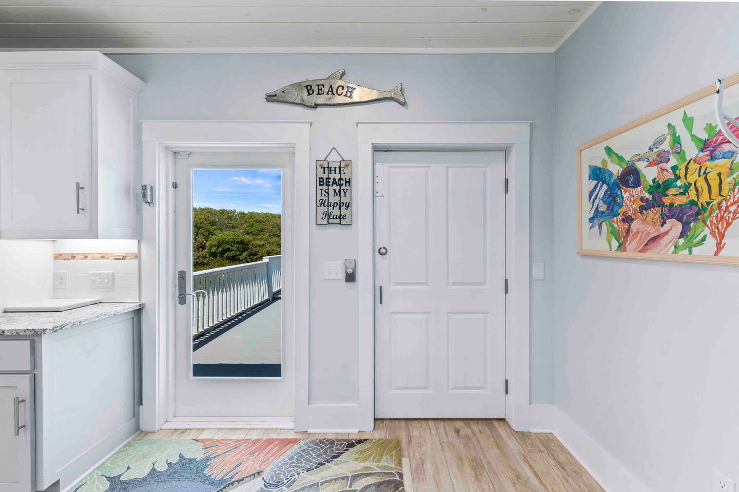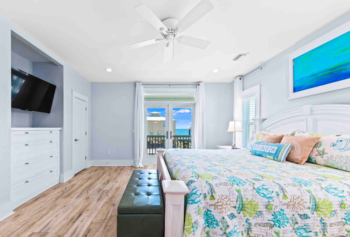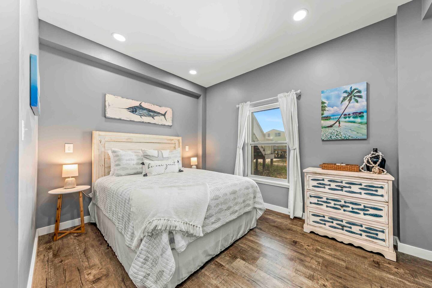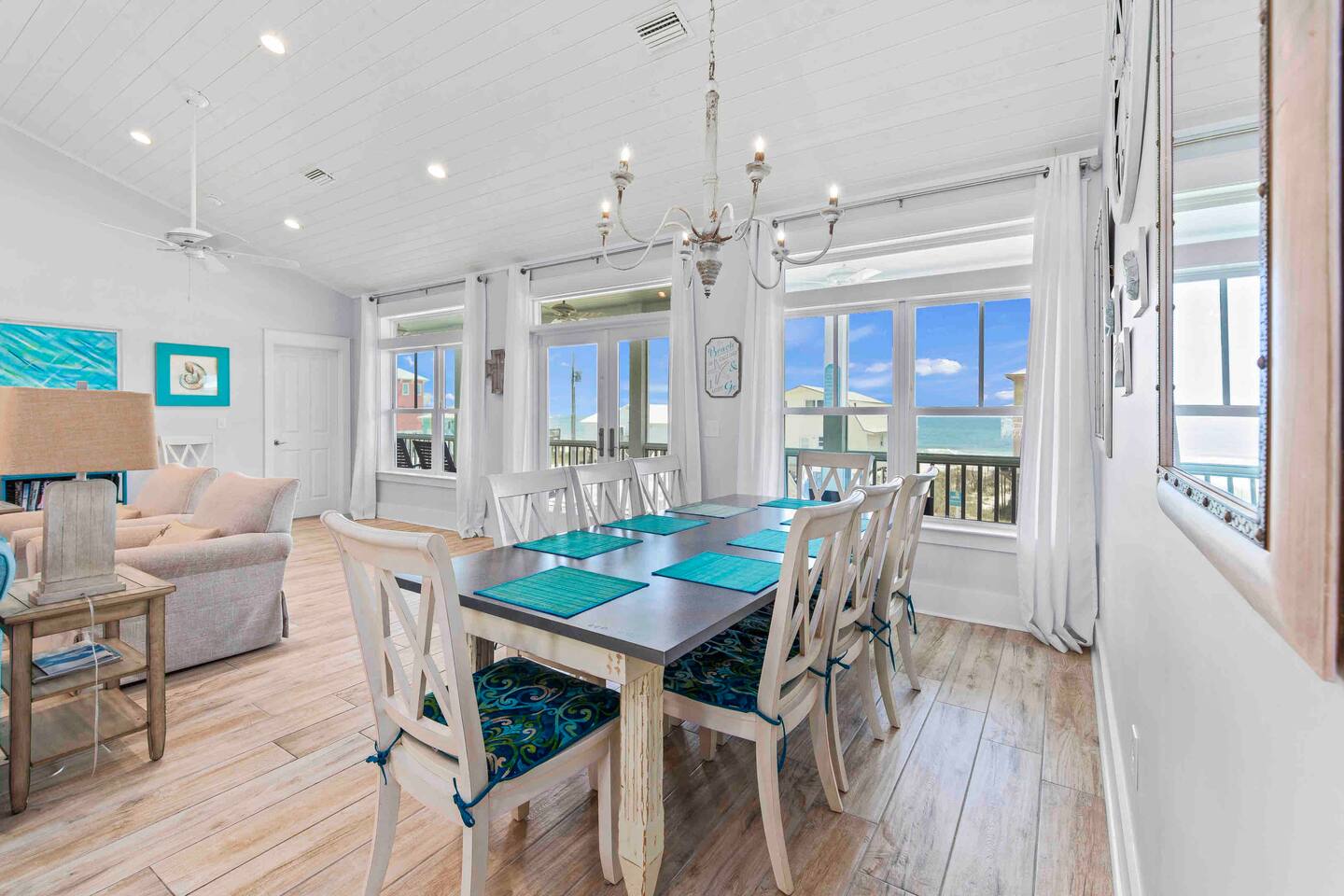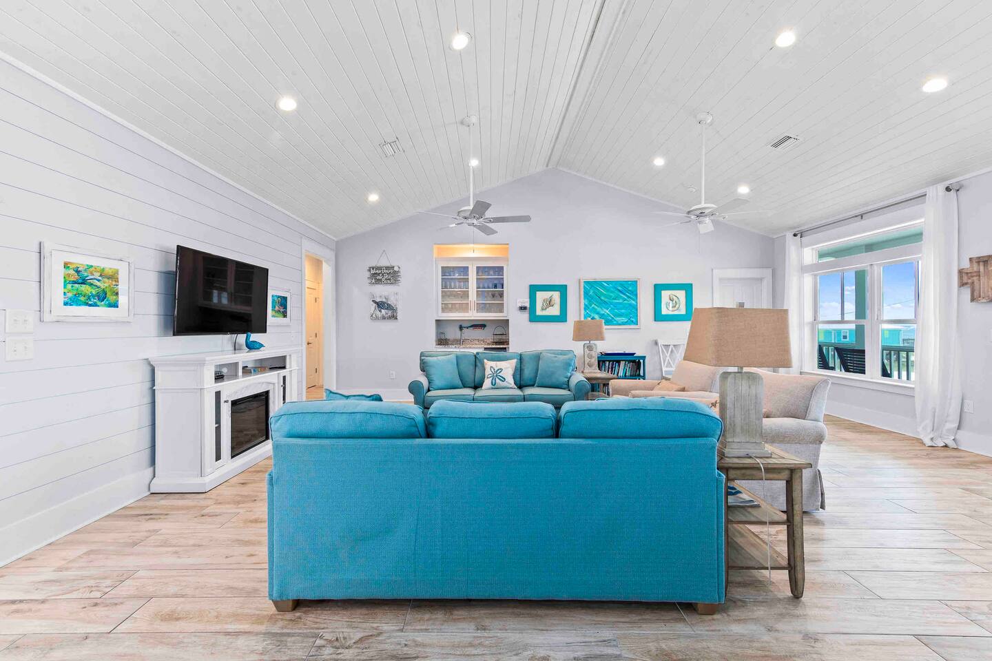* 1 minute walk to the BEACH access! * Villa sleeps 17 people * Next to Kiva Dunes Golf Course * 2 level home with separate entrances Upstairs includes: ~ 2 master bedrooms with a king bed, en suite bathroom, and TV ~ Bunk room one has 4 singles and TV ~ Bunk room two has 2 fulls and 1 single and TV ~ 3rd Full bathroom with tub ~ Spacious open concept living area with TV room, dining room and kitchen (fully stocked for the cook!) ~ Patio with rocking chairs to relax and listen to the waves ~ Private salt water pool. ~ Pool deck with dining and lounge seating Downstairs (new addition) includes: ~ Large combo room; including a bedroom with a queen size bed and an extra TV lounge area ~ 2nd bedroom with a queen size bed ***These two rooms are separated by a barn door and you have to walk through large room to get to second bedroom ~ Full bath with stand up shower • Fully stocked updated kitchen • Grill and utensils • Coffee set up with Keurig Duo- we supply first day of cups, filters and sugar • We provide a starter pack with dish soap, hand soap, shampoo, lotion, garbage bags, paper towels, toliet paper. For longer stays you may need to restock on your own. • Netflix, Hulu and Disney Plus in all rooms • Onsite washer and dryer • Private onsite parking • Beach towels and blankets • Beach wagon • Elevator may be available upon request.