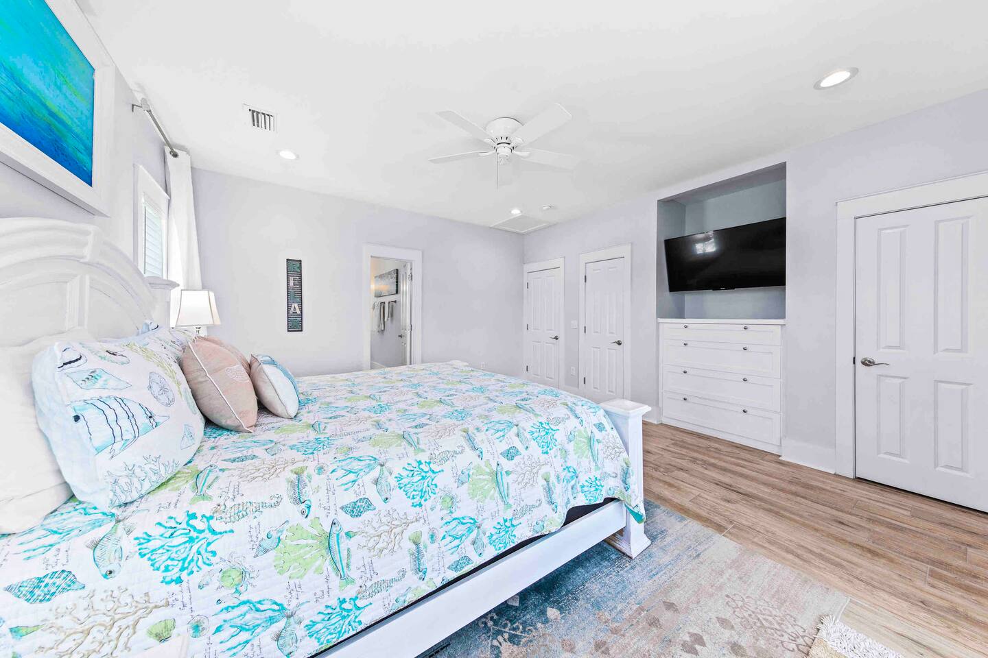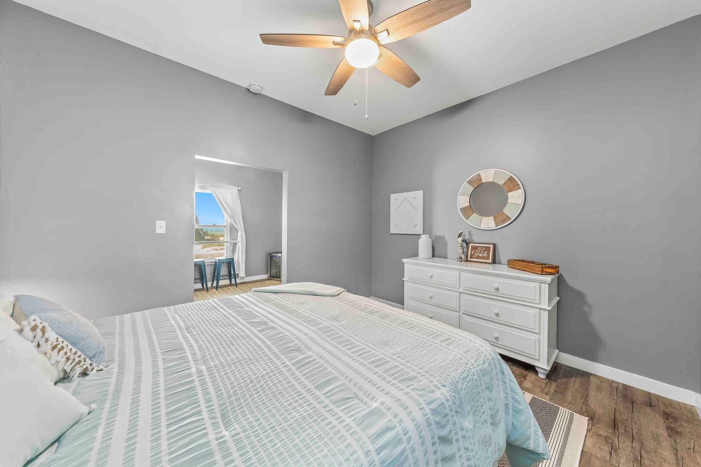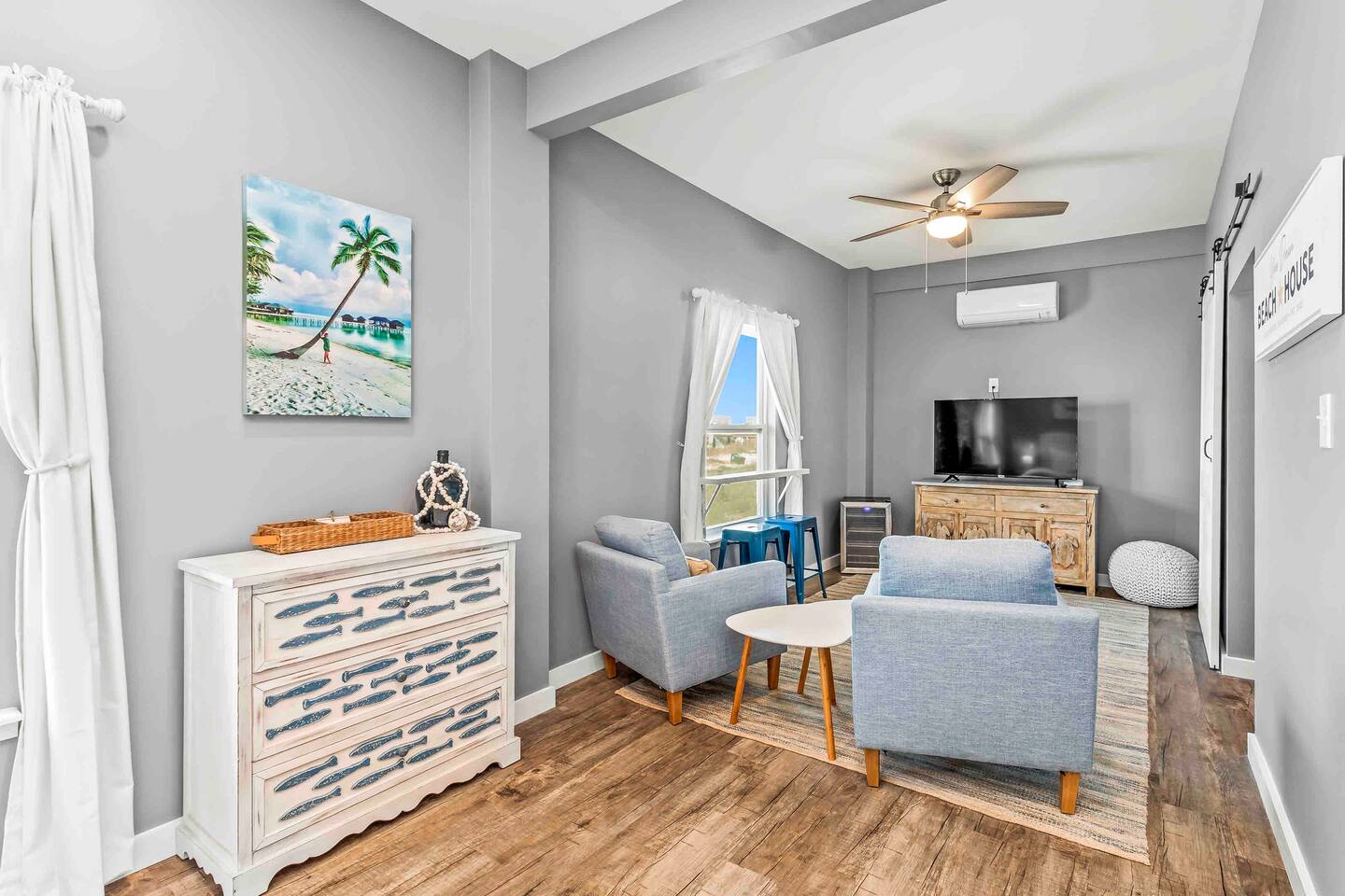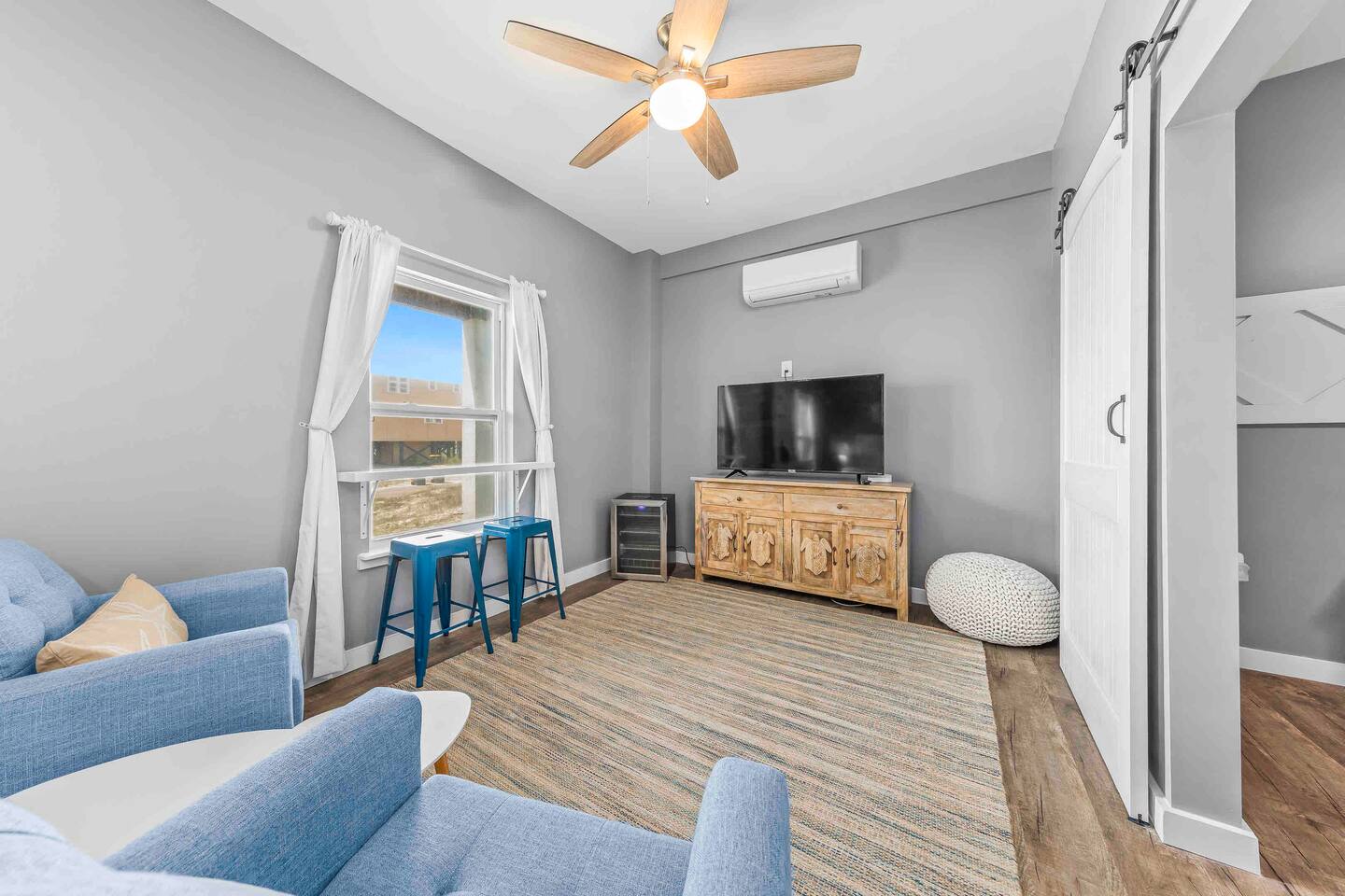 * 1 minute walk to the BEACH access! * Villa sleeps 17 people * Next to Kiva Dunes Golf Course * 2 level home with separate entrances Upstairs includes: ~ 2 master bedrooms with a king bed, en suite bathroom, and TV ~ Bunk room one has 4 singles and TV ~ Bunk room two has 2 fulls and 1 single and TV ~ 3rd Full bathroom with tub ~ Spacious open concept living area with TV room, dining room and kitchen (fully stocked for the cook!) ~ Patio with rocking chairs to relax and listen to the waves ~ Private salt water pool. ~ Pool deck with dining and lounge seating Downstairs (new addition) includes: ~ Large combo room; including a bedroom with a queen size bed and an extra TV lounge area ~ 2nd bedroom with a queen size bed ***These two rooms are separated by a barn door and you have to walk through large room to get to second bedroom ~ Full bath with stand up shower • Fully stocked updated kitchen • Grill and utensils • Coffee set up with Keurig Duo- we supply first day of cups, filters and sugar • We provide a starter pack with dish soap, hand soap, shampoo, lotion, garbage bags, paper towels, toliet paper. For longer stays you may need to restock on your own. • Netflix, Hulu and Disney Plus in all rooms • Onsite washer and dryer • Private onsite parking • Beach towels and blankets • Beach wagon • Elevator may be available upon request.